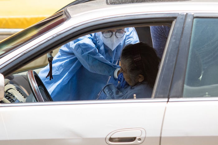 رغم الخطر الذي قد يصل للموت لم يأبه الحفيد بالإجراءات الوقائية والاحترازية الخاصة بفيروس كورونا أمام مشهد جدته التي تصارع الحياة أمامه في موقف للسيارات بإحدى مستشفيات مكسيكو سيتي بالمكسيك، صحيفة “سين امبارجو” المكسيكية.